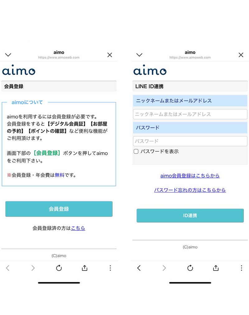 新規の方は会員登録を、既存aimo会員の方はID連携を行ってください