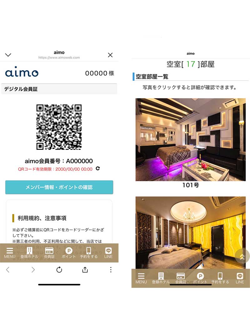 デジタル会員証などサービスを利用できます。 当店を登録すると空室情報が利用可能に。