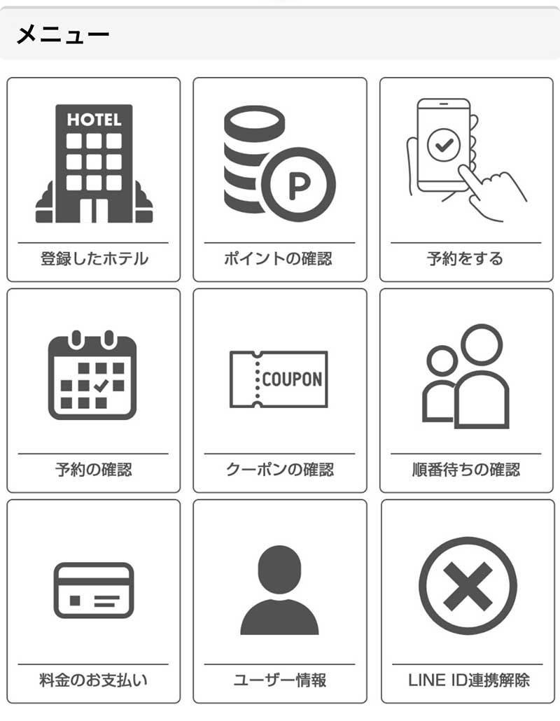 LINEからデジタル会員証を開き、フロントタッチパネル横の機械にQRを読み込む。又は客室TVのメンバー情報からQRを表示、LINEのQR読み取りから読み取る。